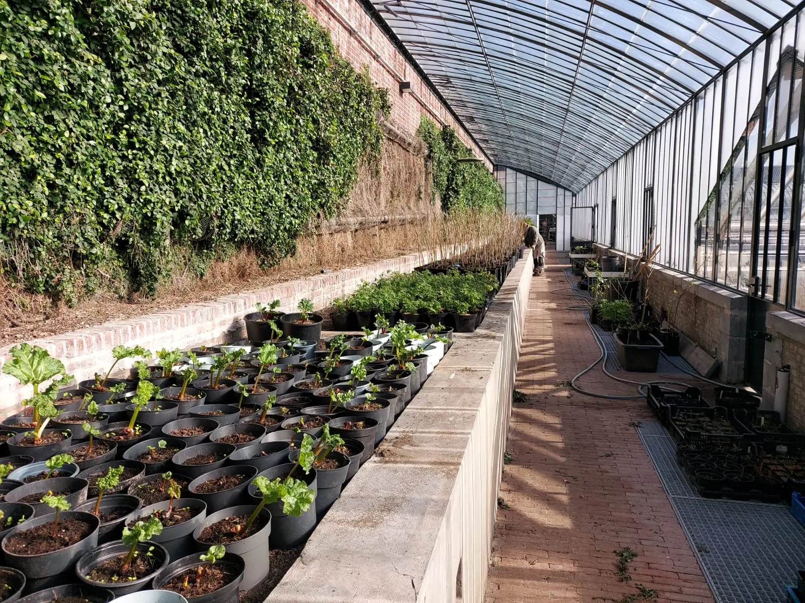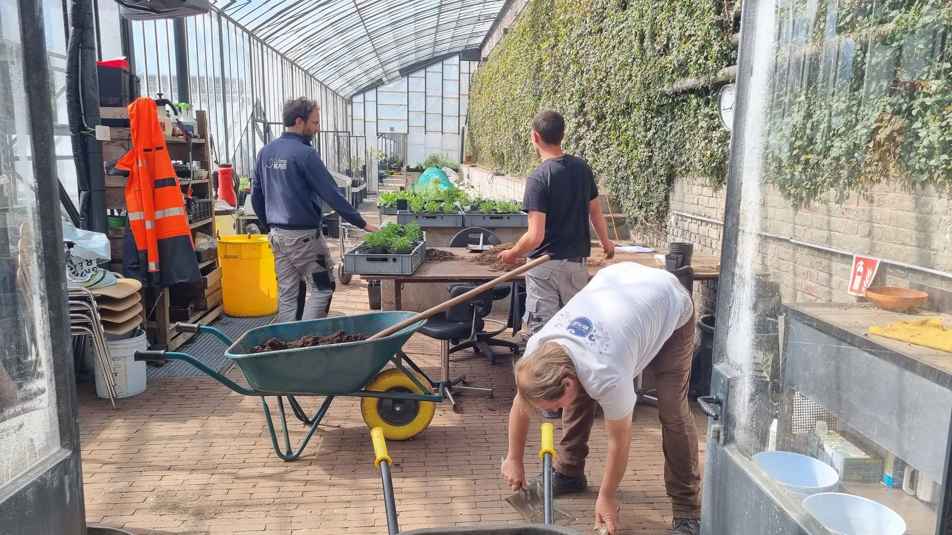 Installée dans les serres du Stuyvenberg à Laeken (convention d'occupation de 10 ans avec Bruxelles-Environnement), la pépinière est un véritable atelier de multiplication où une équipe de huit travailleurs en situation de handicap, encadrés par deux moniteurs-horticulteurs, cultive plantes aromatiques, légumes et fruitiers.